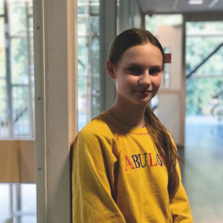 "Ik vind het gebouw van onze school heel fijn omdat het klein is. De docenten hier zijn ook heel grappig en vrienden kan je hier heel makkelijk maken."