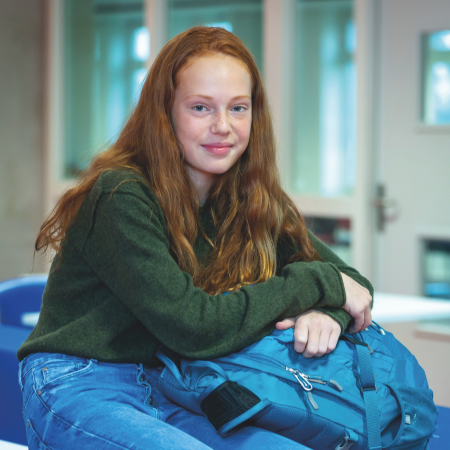 "Ik had schooladvies kader/mavo en hoorde over de kader+ klas op Pantarijn Wageningen VMBO. Ik kom uit Ede en Pantarijn is voor mij ietsje verder fietsen, maar gelukkig zijn er ook andere leerlingen uit Ede met wie ik naar school kan fietsen. Zo maakte ik ook makkelijk vrienden hier."